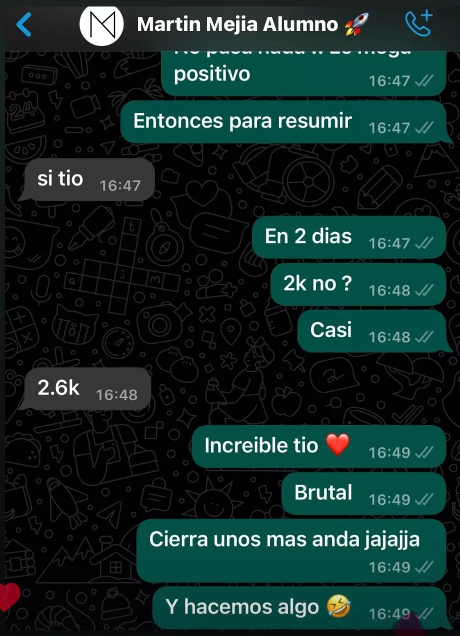 Y para ello, tengo que mantener esa pequeña intriga del precio para que pueda tenerte en zoom y charlar ya que me hace siempre mucho más ilusión hablar con alguien cara a cara que a través de una VSL.