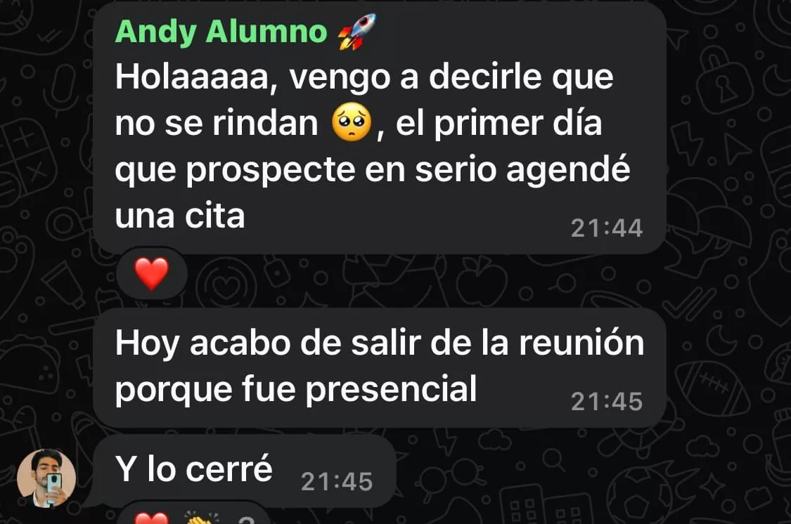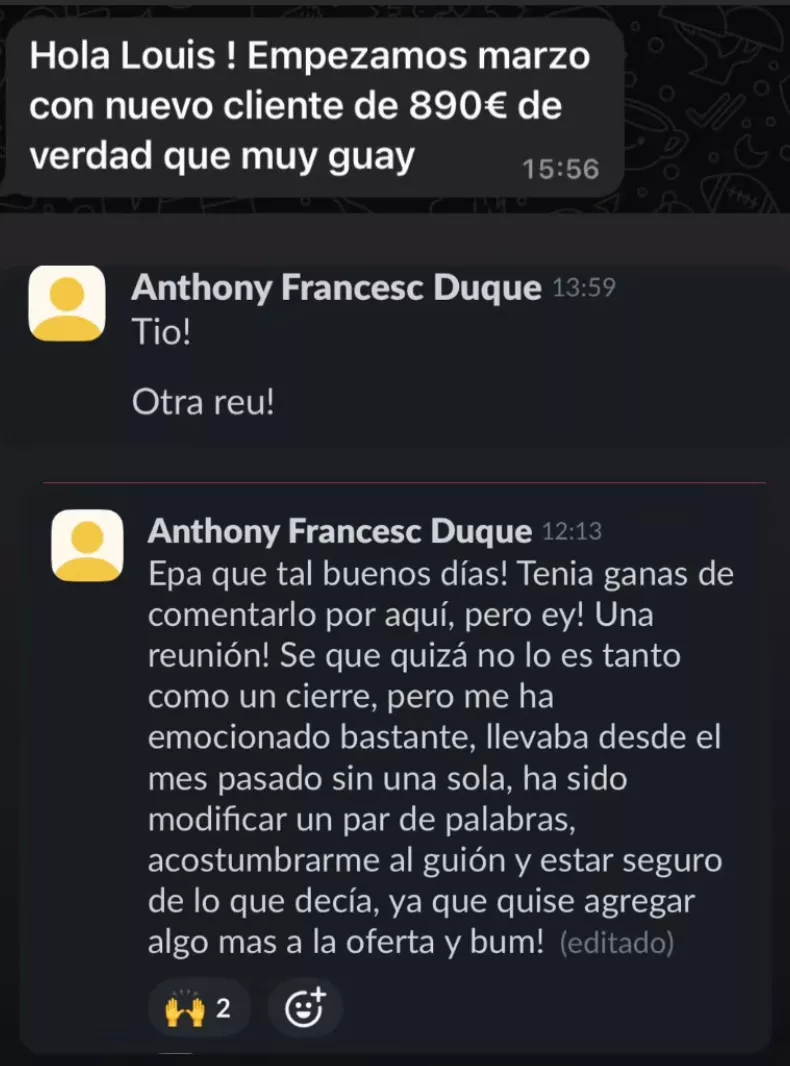 Llamar en frío es duro pero cuando cierras reuniones una detrás de otra sientes que es lo mejor."